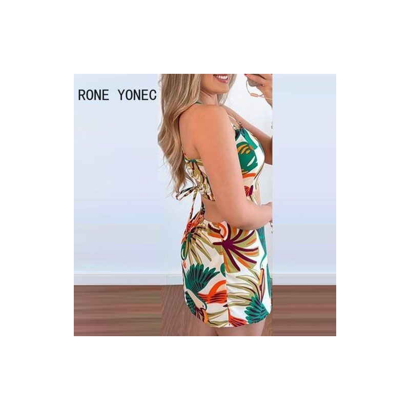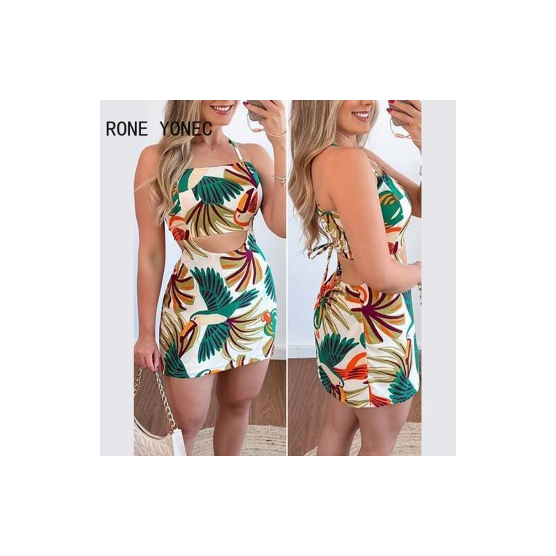 Women Elegant Sexy Spaghetti Straps Hollow Out All Over Print Lace Up Mini Sexy Dresses