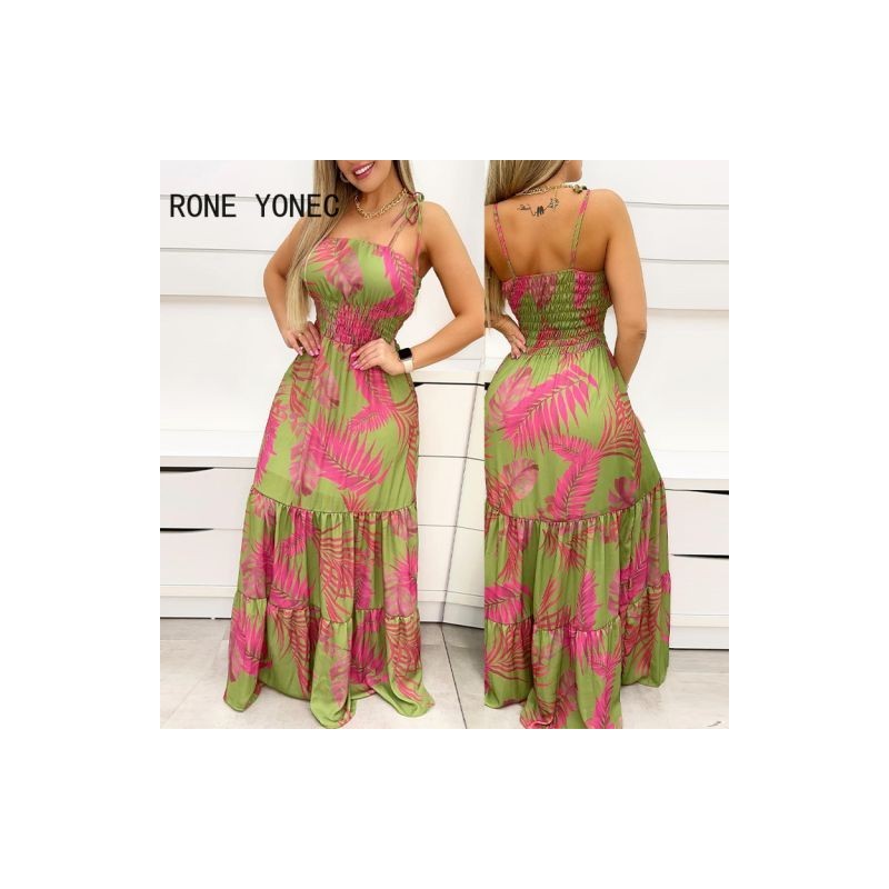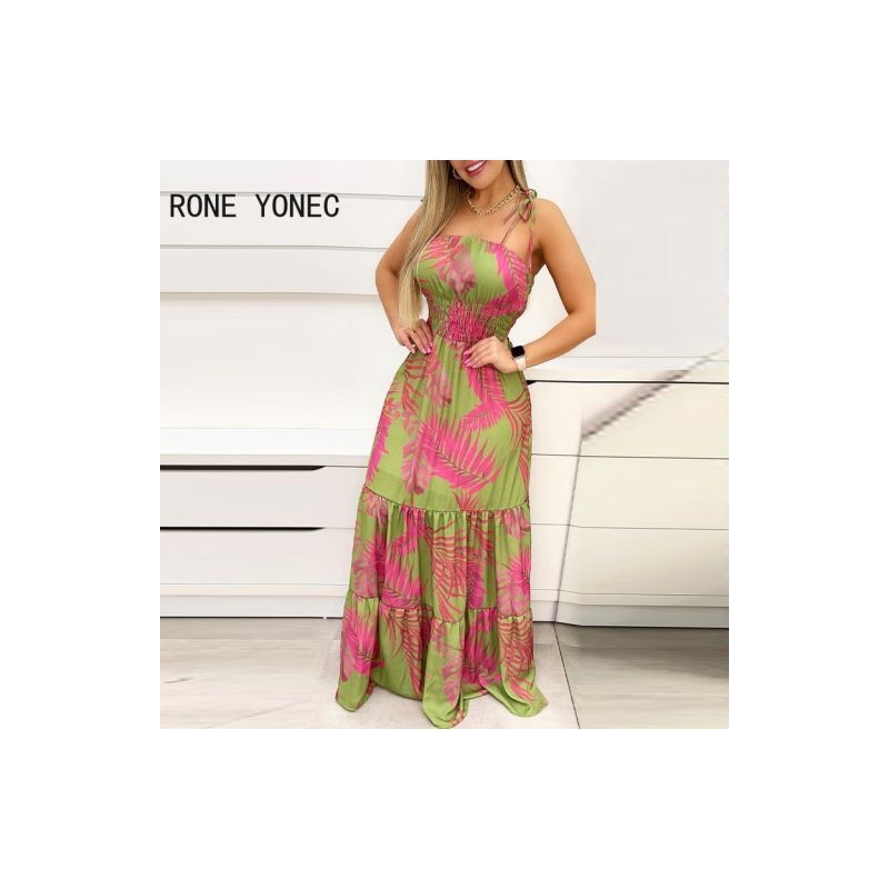 Női Elegáns, Szexi Fűzős Spagettipántok Nyomtatott Összecsukható Maxi szexi A-vonalú nyaralóruhák