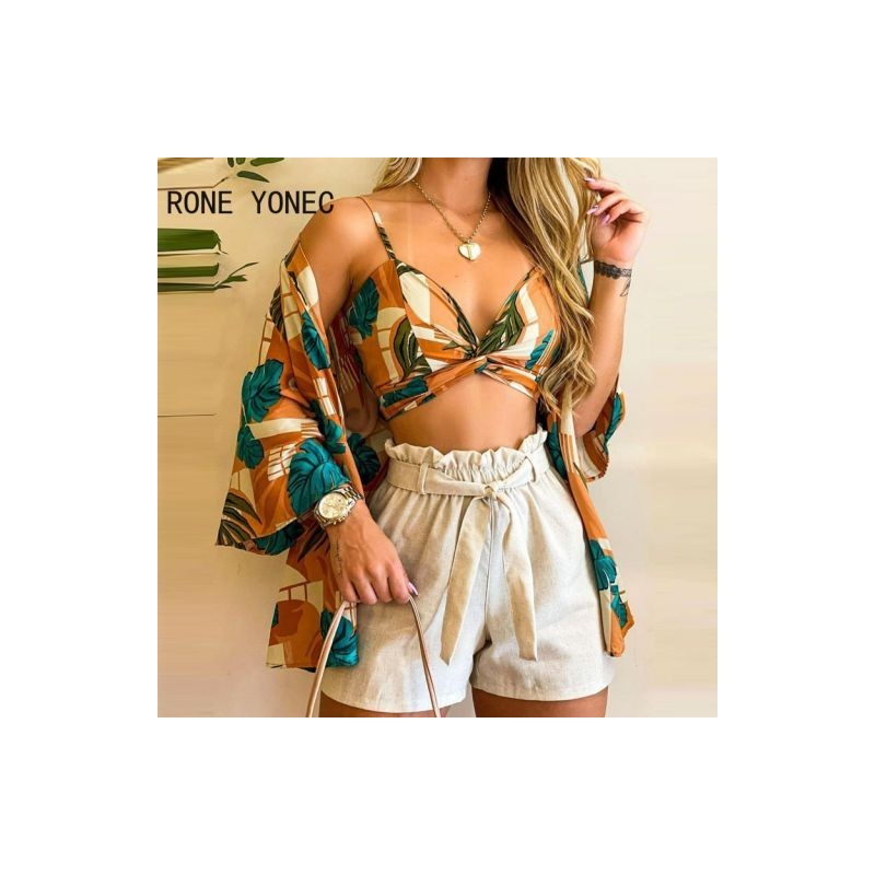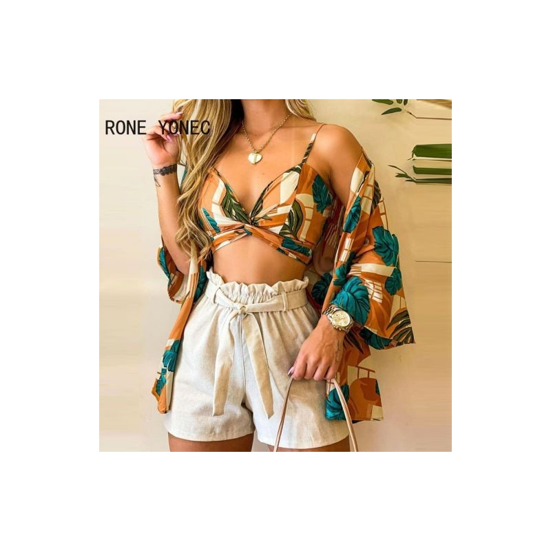 Női alkalmi szexi Cami hálós masni nyak levél mintás denevérszárnyú ujjak két darabos édes szexi felsők