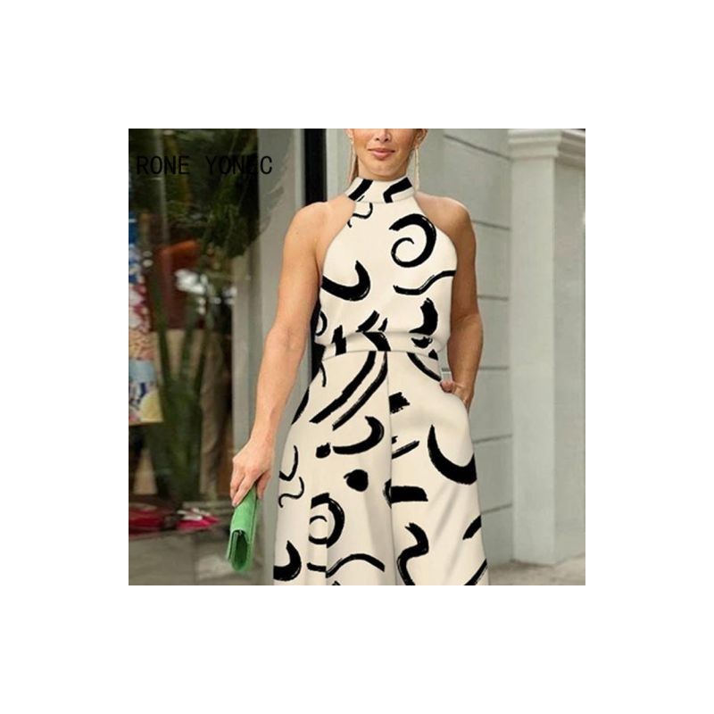 Női Elegáns Allover Print Halter Sexy Tank Pocket Working Jumpsuit