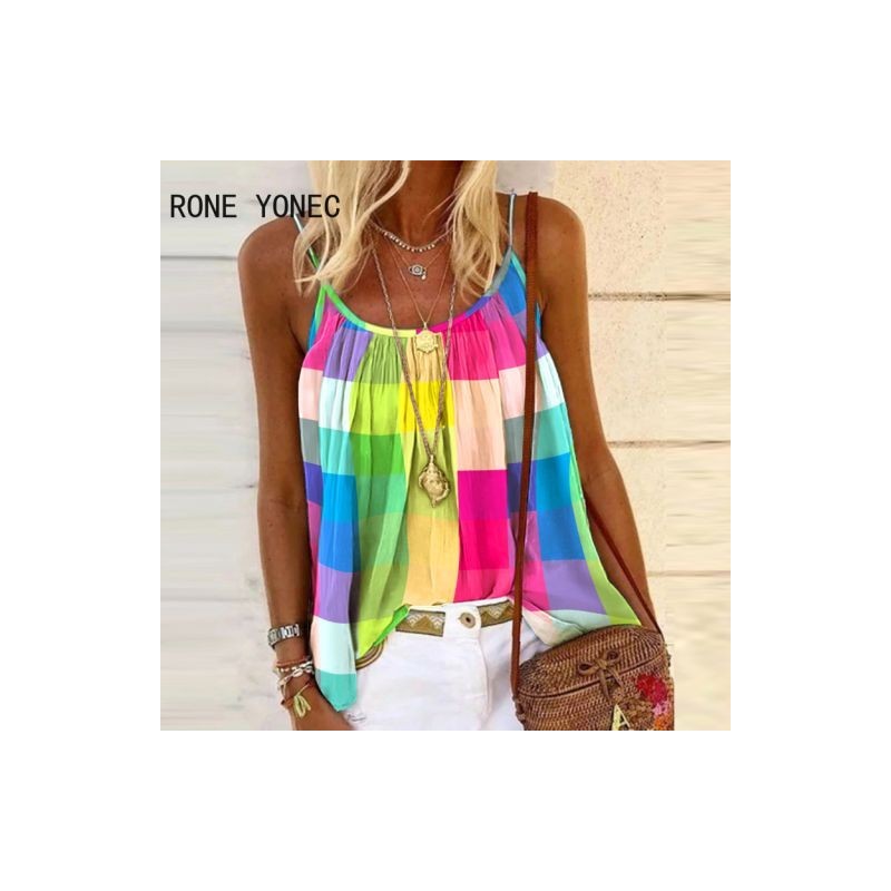 Női elegáns szexi kockás spagettipántos V nyakujjú ujjatlan nyári alkalmi Camis Crop felsők