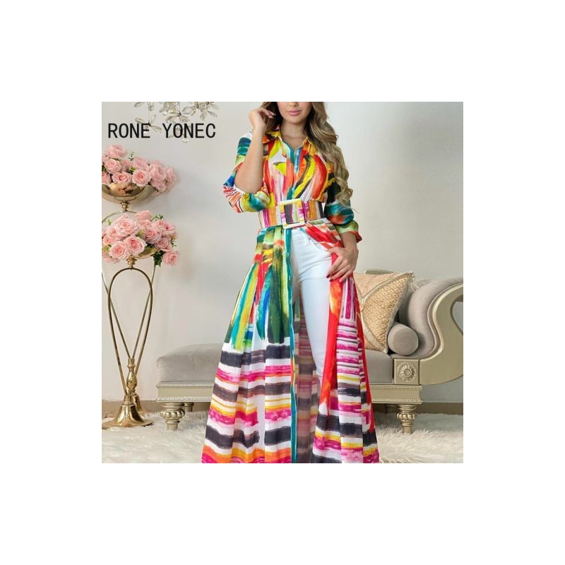 Women Elegant Tie dye Lantern Sleeves Sashes Maxi Colorful Dresses Tops