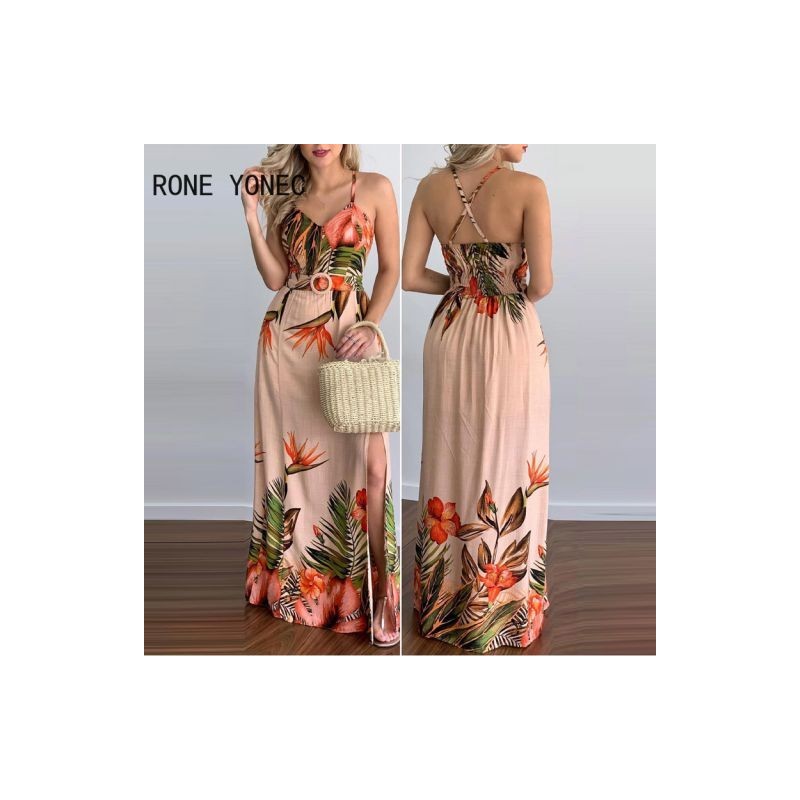 Női Elegáns Szexi Spagettipántos Criss Cross Folds Maxi High Silt Szexi A-vonalú nyaralóruhák