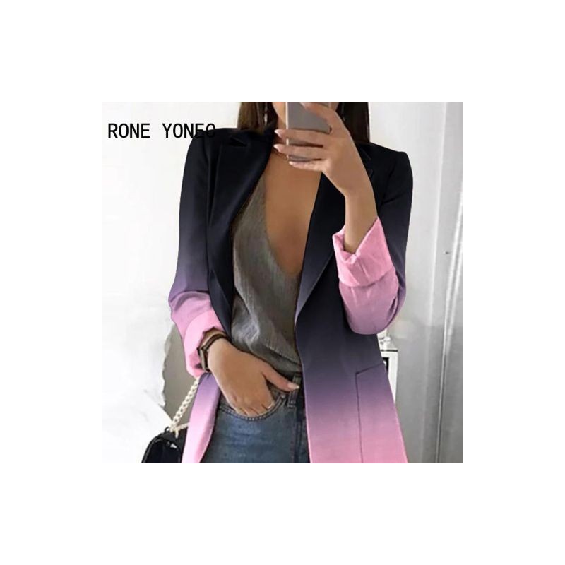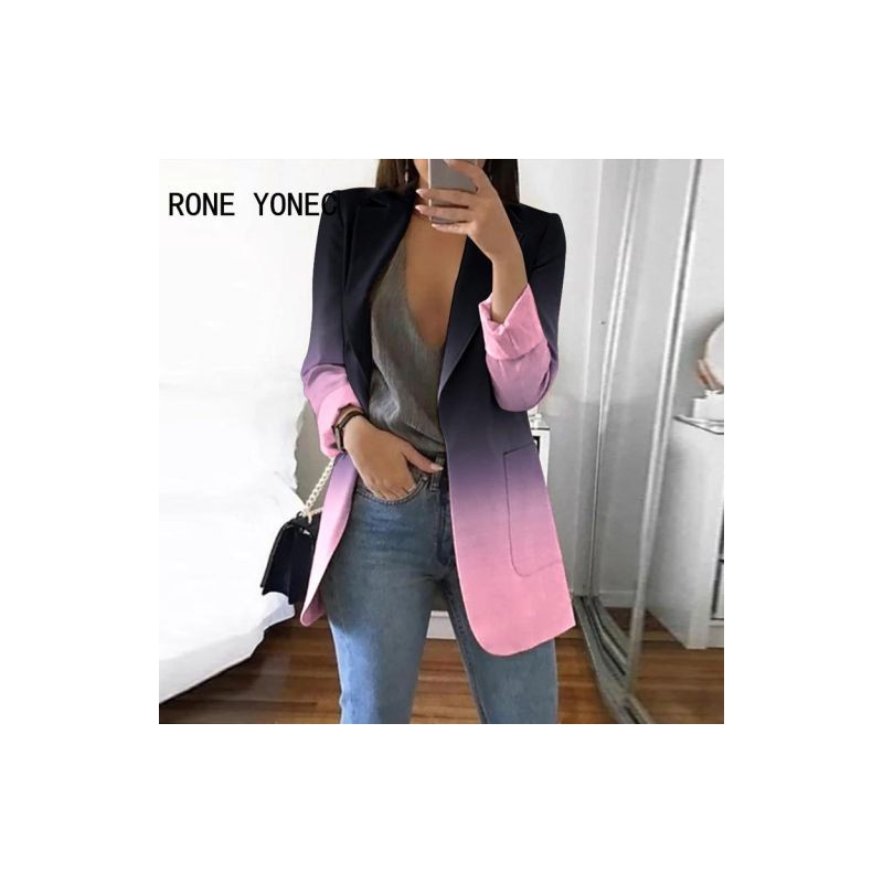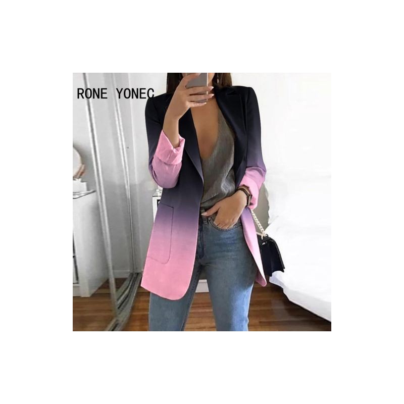 Női elegáns, színátmenetes gallérral ellátott, hosszú ujjú, nyitott öltésű zsebblézer dzsekik