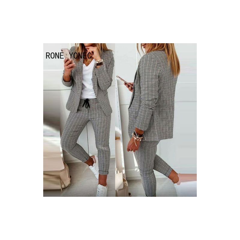 Női munka alkalmi elegáns, hosszú ujjú kabát felsők és ceruzanadrágok alsók tavaszi/őszi vádliig érő nadrág blézer szettek