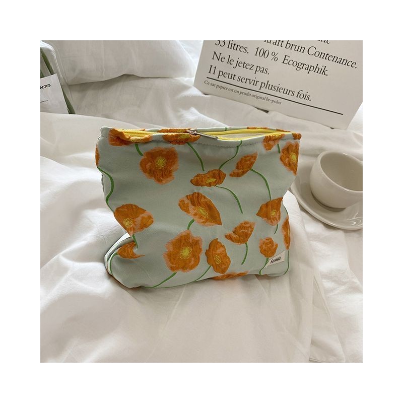 Women Travel Cosmetic Pouch Bag Large Capacity Make Up Storage Bags Fashion Relief Flowers Print Canvas Washing Pouch