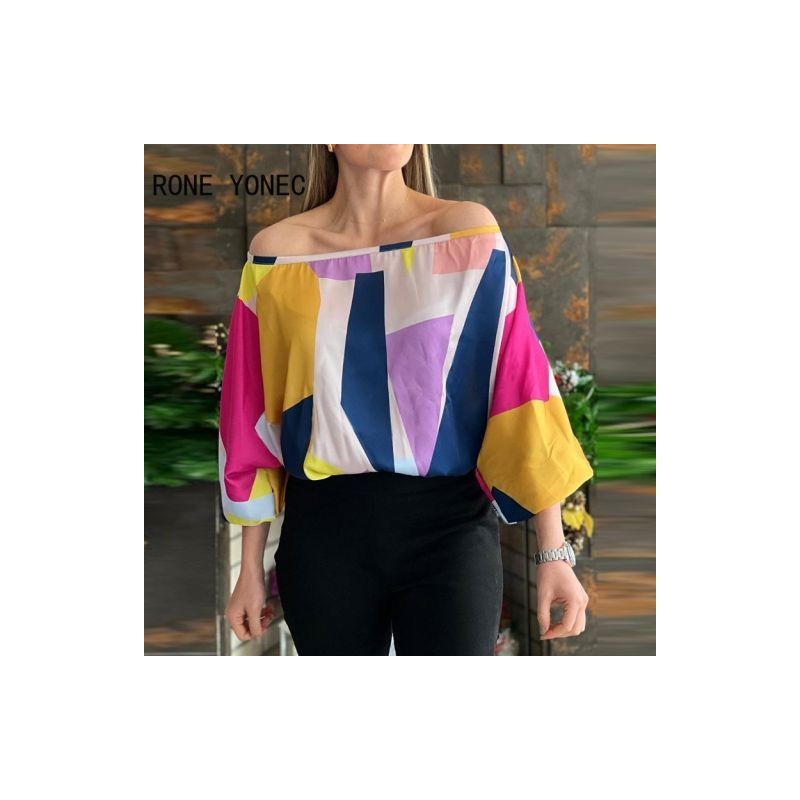 2023 Women Tops Off Shoulder Allover Print Lantern Sleeve Top Women Blouse