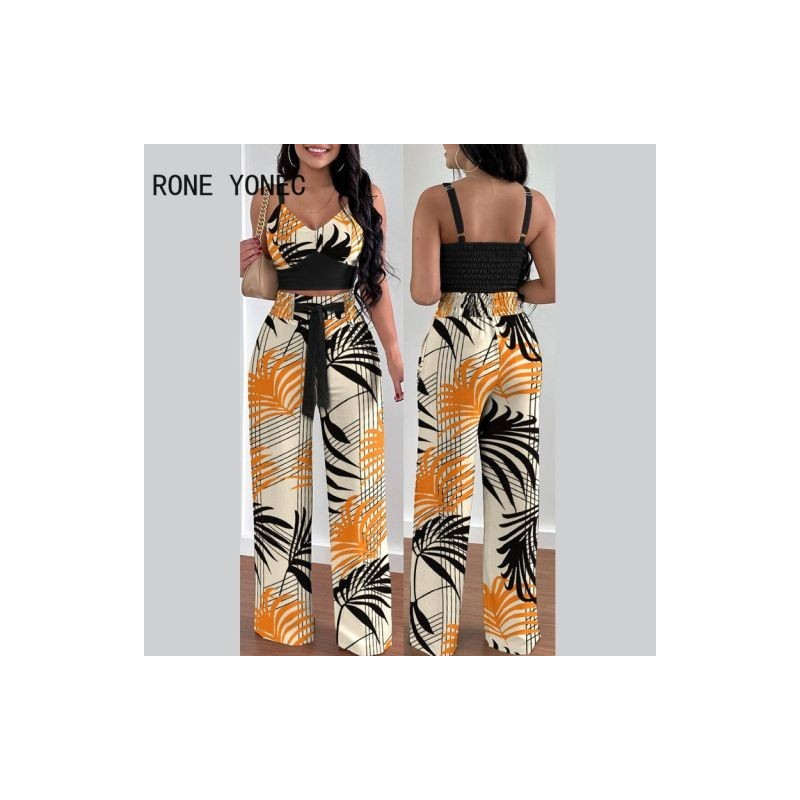 Női divat, elegáns, tömör, ujjatlan, fűzős V nyakú, levágott felső redőzött, hosszú, egyenes szexi nadrágszettek