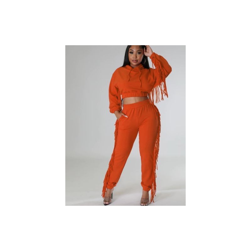 Akaily Fall Black Tassel 2 kétrészes készletek, női ruhák, 2022-es hosszú ujjú kapucnis és hosszú nadrág szettek Női alkalmi hozzáillő szettek