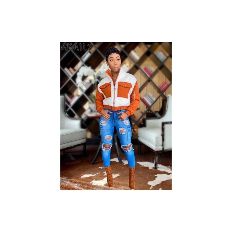 Akaily őszi téli gyapjú cipzáras kabátok női divat 2022 Patchwork hosszú ujjú téli kabát Női alkalmi teherkabátok