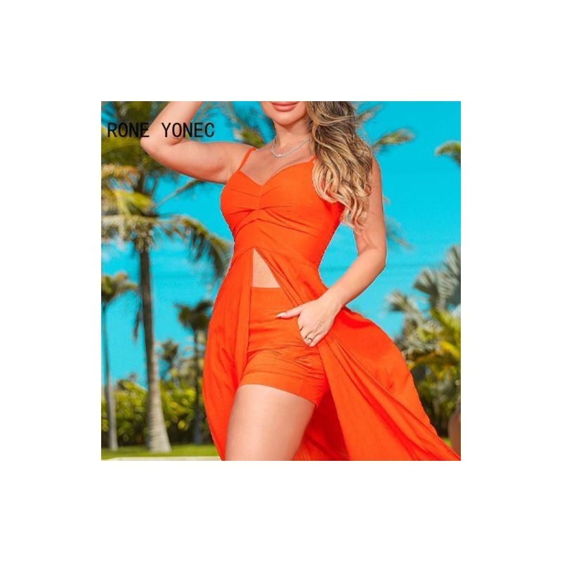 Women Elegant Solid Sleeveless Cami Asymmetrical Vacation Beach Maxi Top Short Sets
