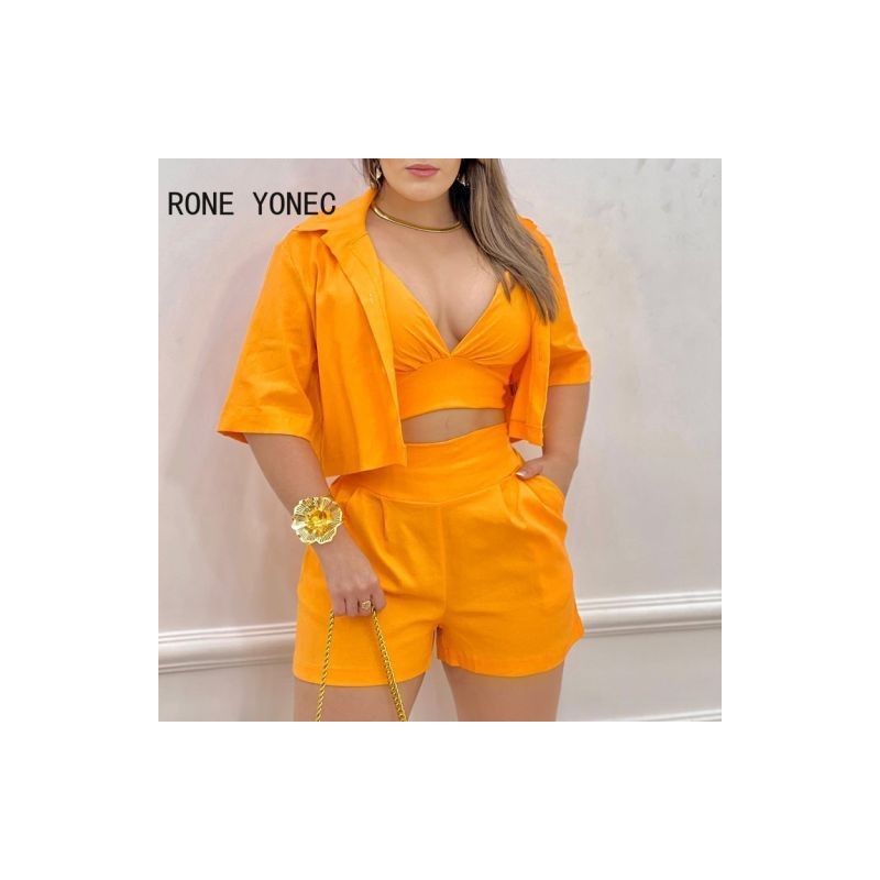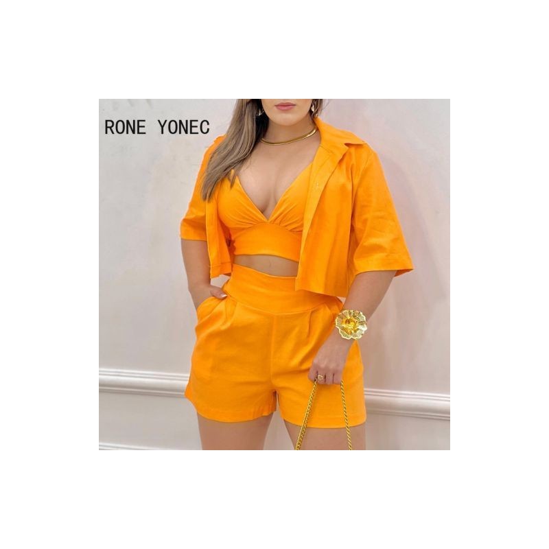 Női szexi félhosszú ujjú, nyitott öltésű Vnyakk felsőrész, belül tömör háromrészes szexi rövid szettek