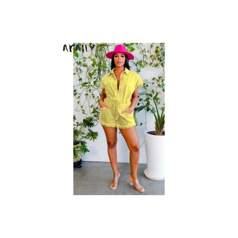 Akaily nyári bojt rózsaszín farmer 2 darab kétrészes készletek női alkalmi ruhák 2022 fehér rövid ujjú ingek és rövidnadrág szettek női