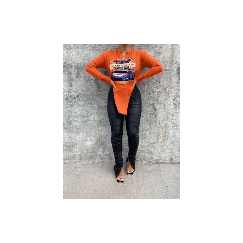 Akaily őszi fekete grafikus pólók női divatnak 2022 O nyakú, hosszú ujjú aszimmetrikus felsők Női laza alkalmi nyomtatott felsők