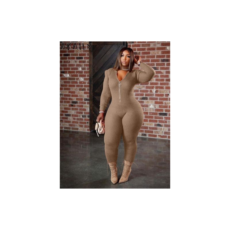 Akaily őszi téli narancssárga kötött kombi női egyrészes fitneszruhák 2022 kapucnis cipzáras hosszú ujjú Bodycon jumpsuit
