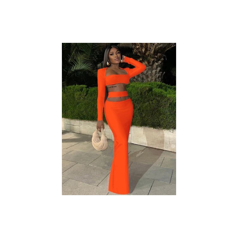 Midnight Bandage 2 Piece Dress Suits for Female Festival Clothing Sexy Long Sleeve Square Collar Top bodycon Homecoming Dresses