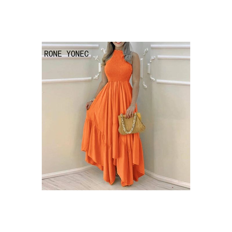 Elegáns női ruha sima ujjatlan, rovátkolt maxi ráncos ruha nyári ruha