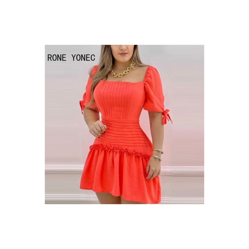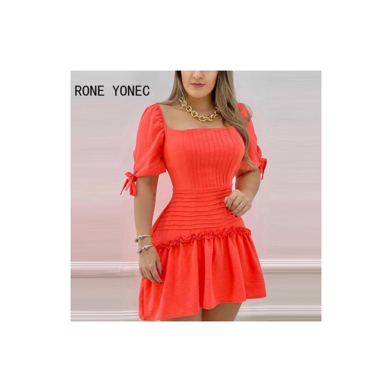 Női, váll nélkül, fodros, fodros, fodros szegélyű, többszínű nyomtatott ruha vakációs ruha, 2021