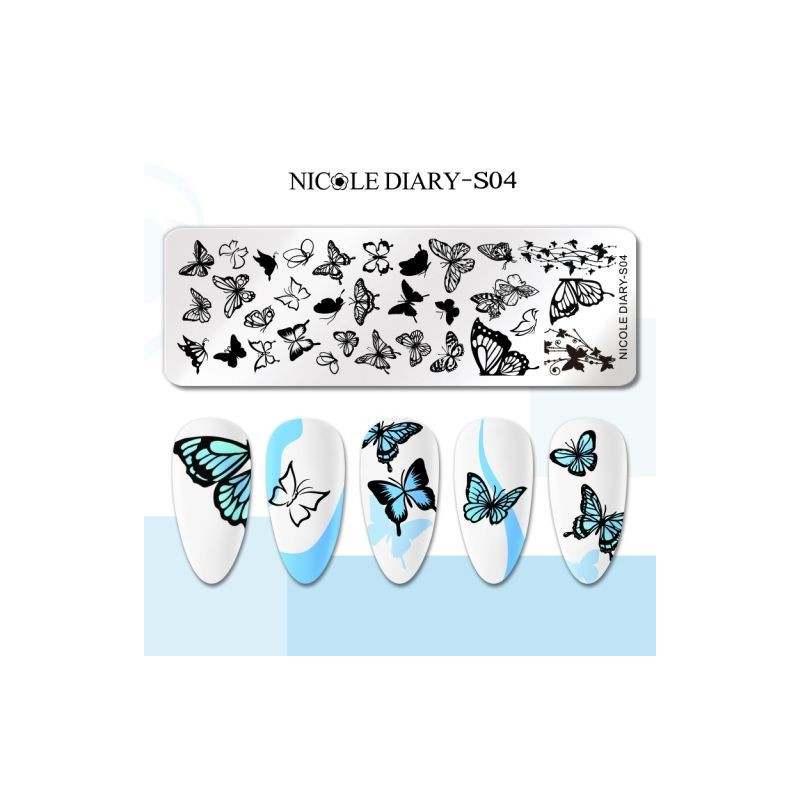 NICOLE DIARY Stripe Heart Nail Stamping Plate Valentine's Day Flower Image Nail Stamp Templates Gel Nail Polish Printing Plate