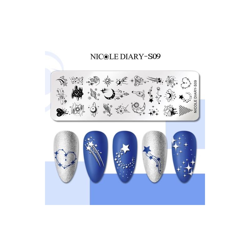 NICOLE NAPLÓ French Line Geometry körömbélyegző lemezek rozsdamentes acél csillag szív virág köröm sablon sablonok körömbélyegzőhöz