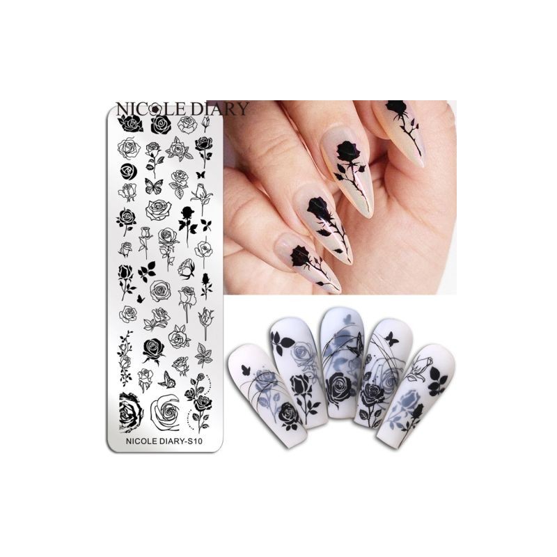 NICOLE DIARY Rose Flower Nail Stamping Plates Black White Design Stamp for Nails Printing Stencil Manicuring Templates