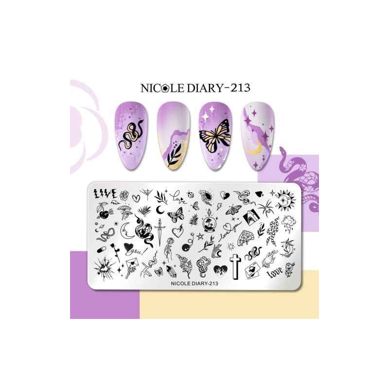 NICOLE NAPLÓ French Line Geometry körömbélyegző lemezek rozsdamentes acél csillag szív virág köröm sablon sablonok körömbélyegzőhöz