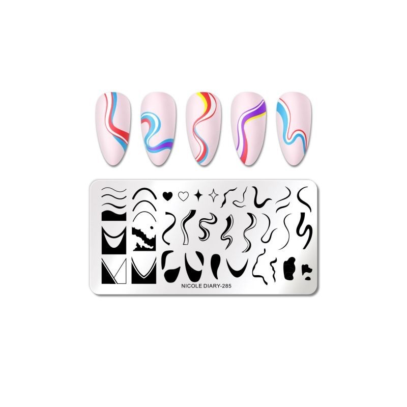 NICOLE DIARY Marble Blooming Stamping Plates Artistics Stamping for Nails Nail Polish Templates Coconut Tree Stencil for Stampi