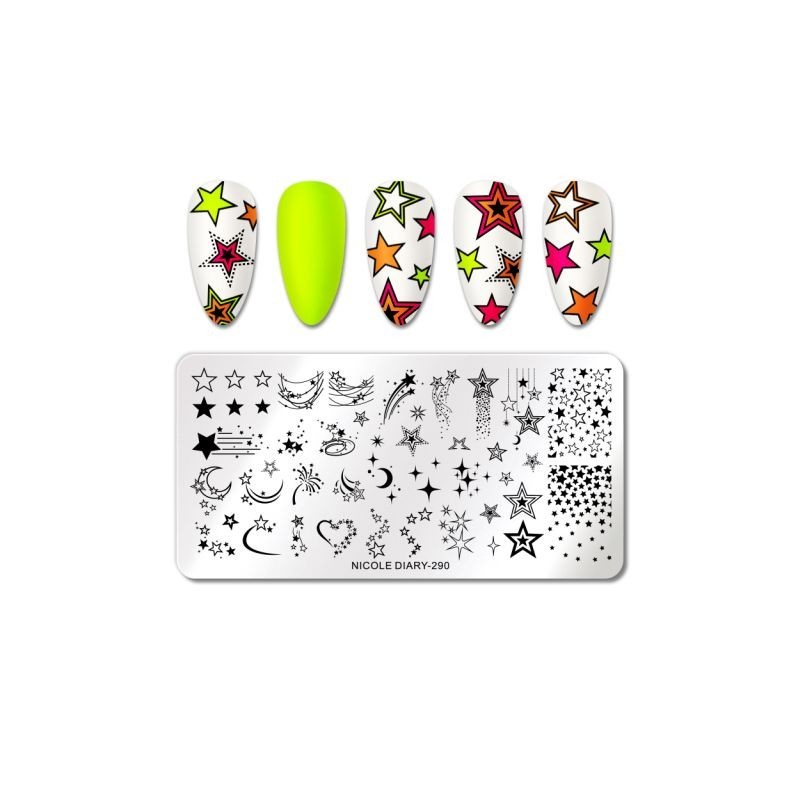 NICOLE DIARY Marble Blooming Stamping Plates Artistics Stamping for Nails Nail Polish Templates Coconut Tree Stencil for Stampi