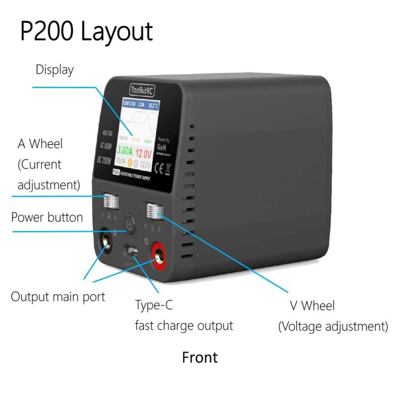 ToolkitRC P200 Mini 30V AC100W DC200W 10A GaN Adjustable Mini Desktop Power Supply With AC or DC Two Input Modes