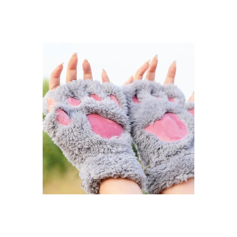 Akciós Téli Medve Plüss Macska Mancs Karmos kesztyűk Karácsonyi Halloween női jelmez Félujjas kesztyűk Meleg szőrös kesztyűk