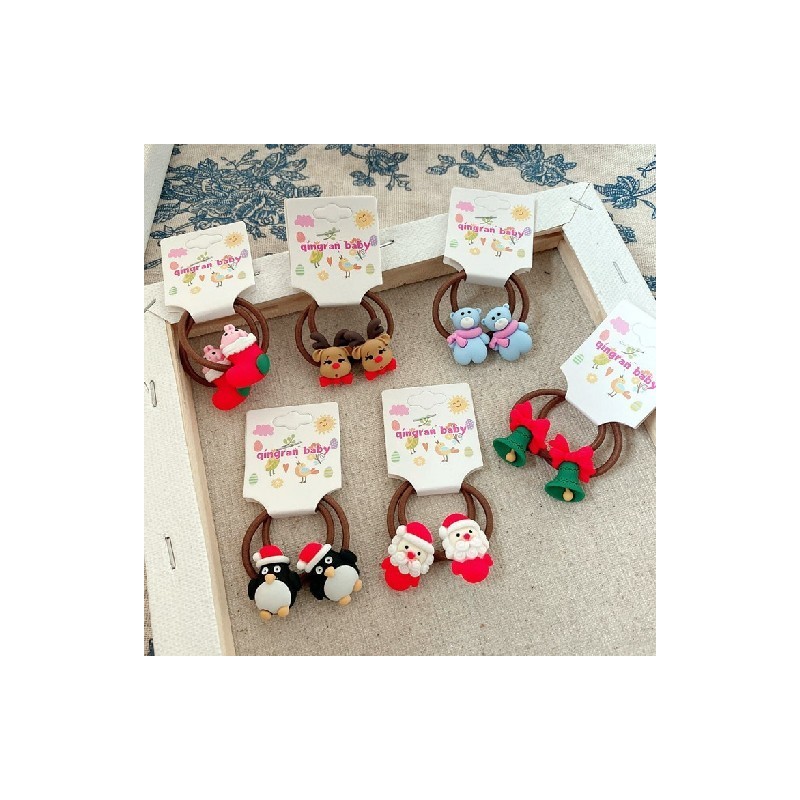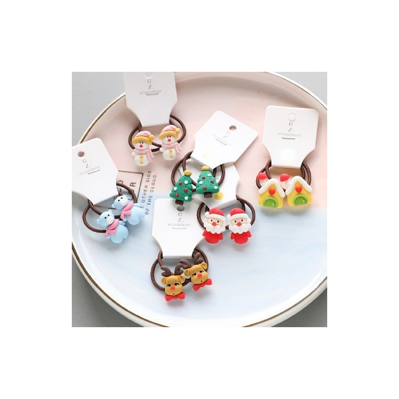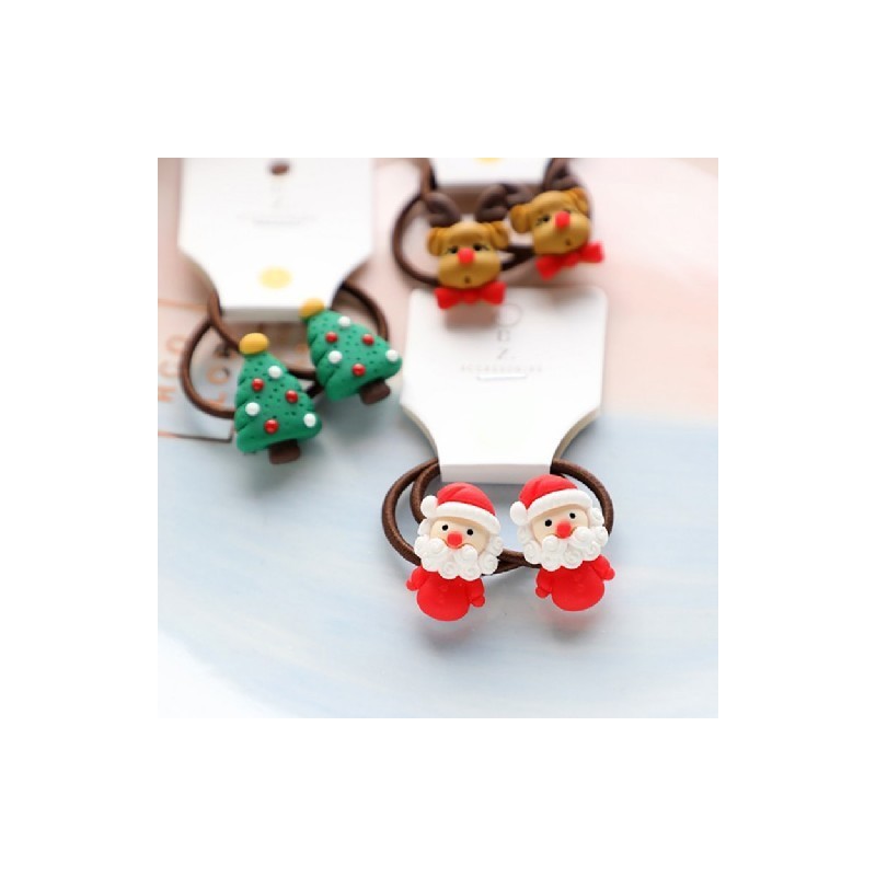 2Pcs/Set Christmas Hair Bands Cute Elk Hair Band Elastic Rubber Band Scrunchies Girls Ponytail Holder Christmas Hair Accessories