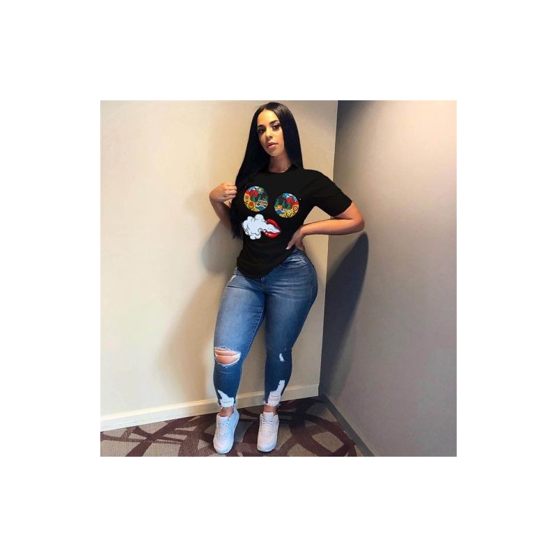 Akaily Summer Fashion Graphic T Shirts O Neck Short Sleeve Print Crop Top Women Streetwear Club Black White Blue Tops 2022