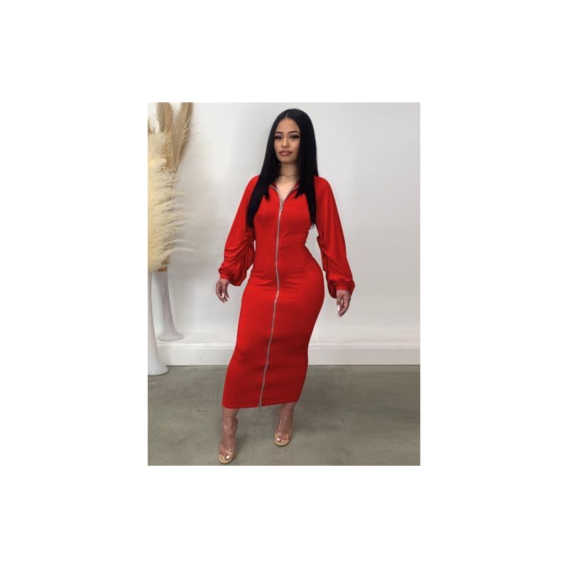 Akaily őszi fekete maxi ruhák nőknek 2022 V nyakú, hosszú ujjú, cipzáras, hosszú női ruha, piros, domború, alkalmi testes ruha