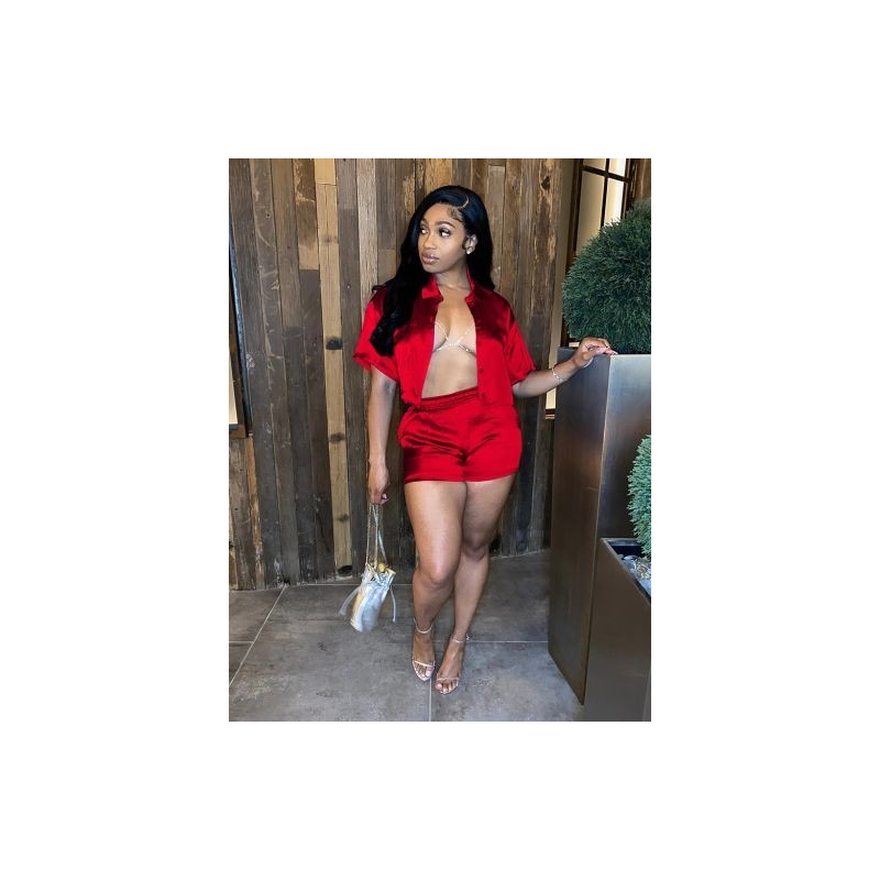 Elastic Satin Two Piece Short Sets for Women Turn Down Collar Short Sleeve Button Up Loose Shirt and High Waist Sleepwear Shorts
