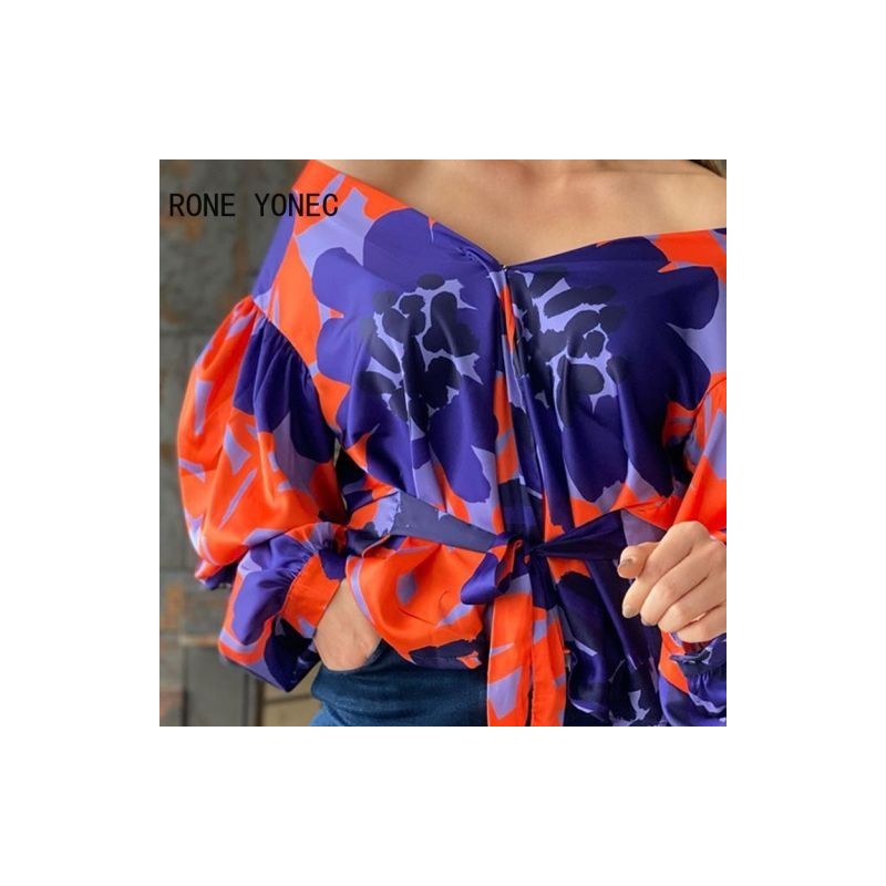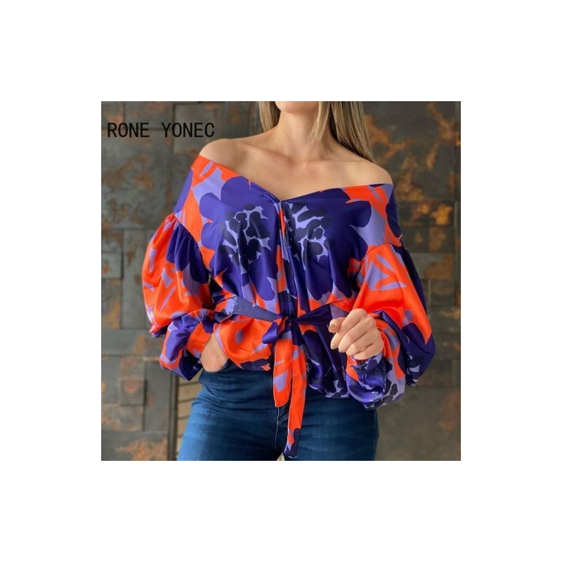 Női alkalmi, mindenhol nyomtatott váll derékpánt Puff ujjú szexi blúz