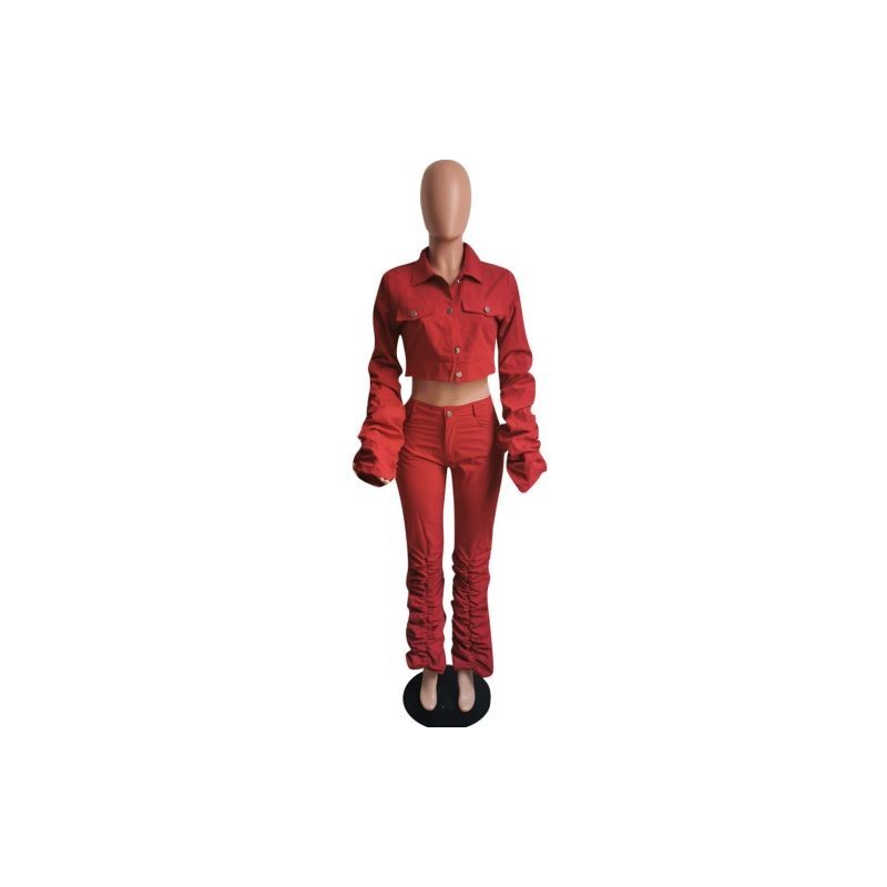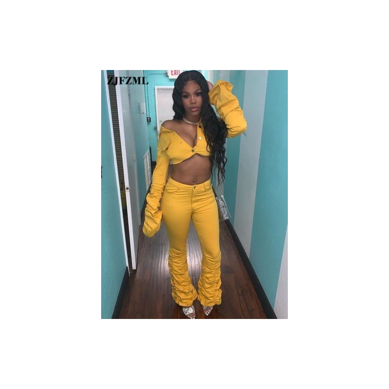 Fashion Casual Two Piece Set Tracksuit Women Turn Down Collar Long Sleeve Crop Coat And High Waist Bodycon Pant Club Outfits