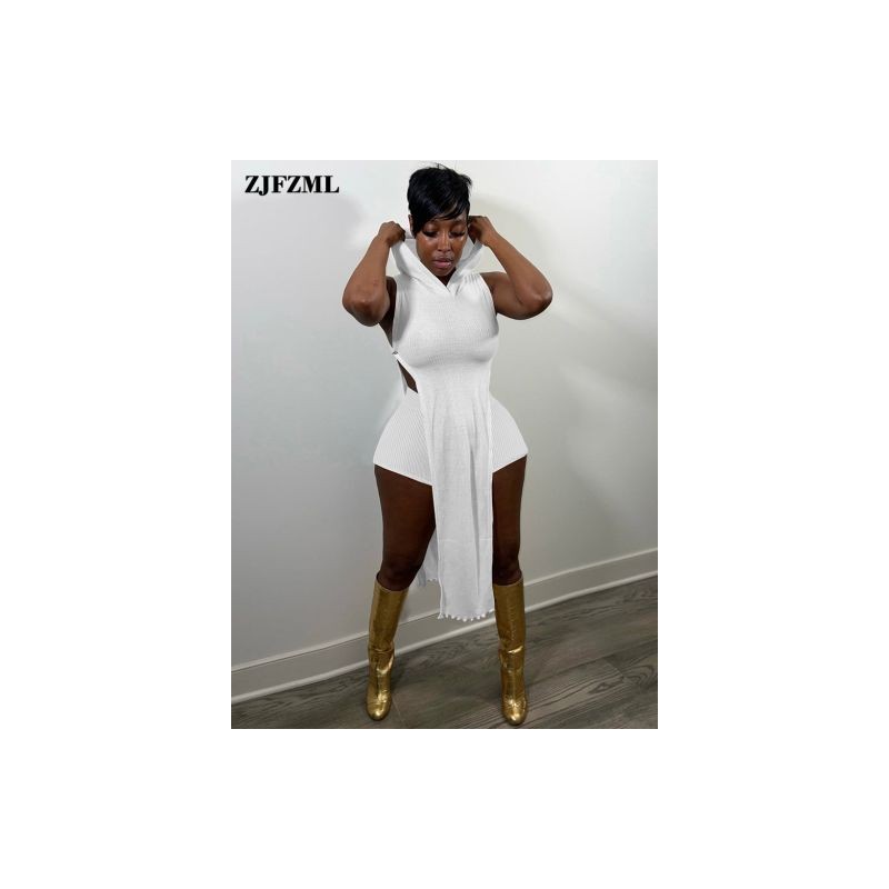 Sexy Solid Two Piece Jogging Suits Female Knitted Tracksuits Side Split Hooded Hoody and Biker Shorts Breathable Stretch Outfit