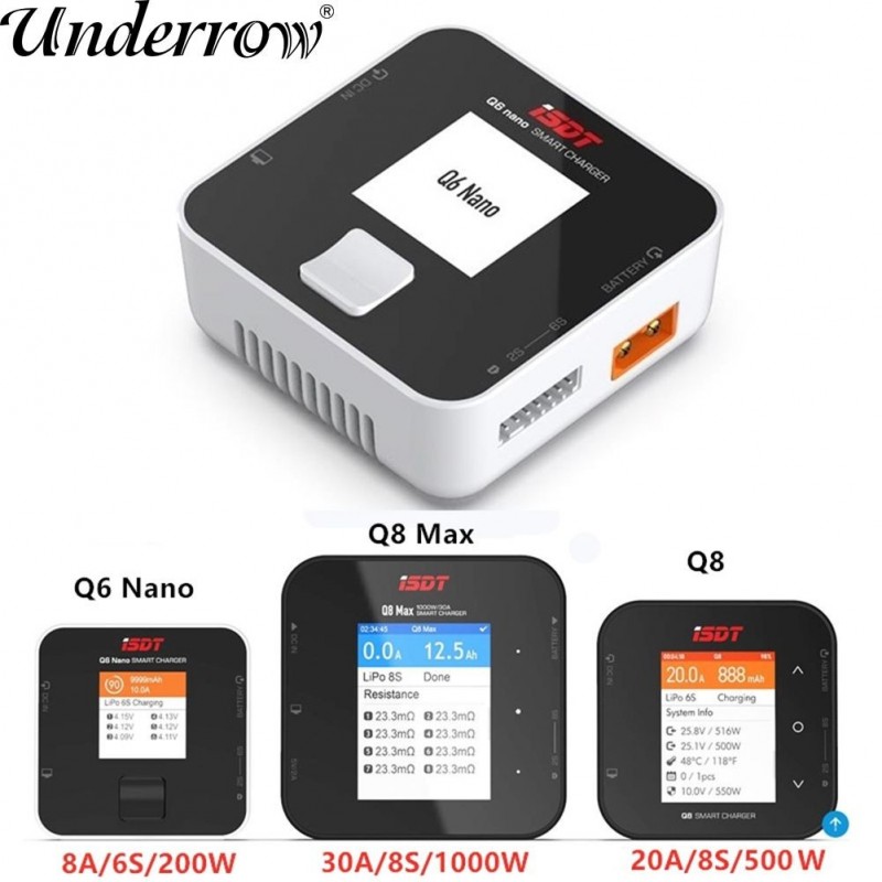 ISDT Q6 Nano 200W / Q8 Lite 500W / Q8 Max 1000W 1-6S 2-8S Pocket High Power Lipo Battery Balance Charger for RC FPV Drone