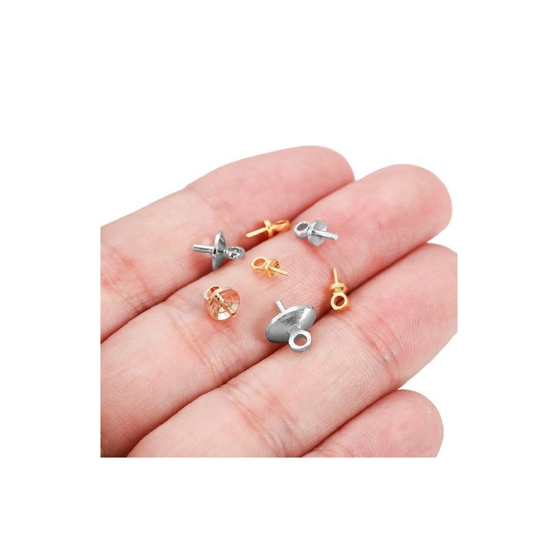 50-100pcs/lot Brass Half hole Charms Eye Pins Beads End Caps Top Drilled Pendant Bails Findings Connectors For Jewellery Makings