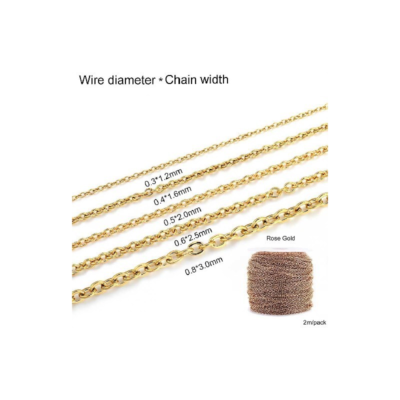 2m/lot 1.2-3mm Width Cross Stainless Steel Gold Necklaces Chains Bulk Link Chains For DIY Jewellery Making Supplies Accessories