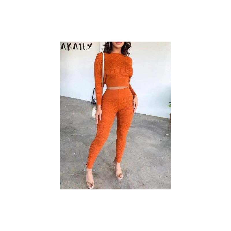 Akaily őszi narancssárga pulóverhez passzoló készletek kötött 2 kétrészes szett női ruhákhoz 2023 fekete hosszú ujjú pulóver és nadrág szettek