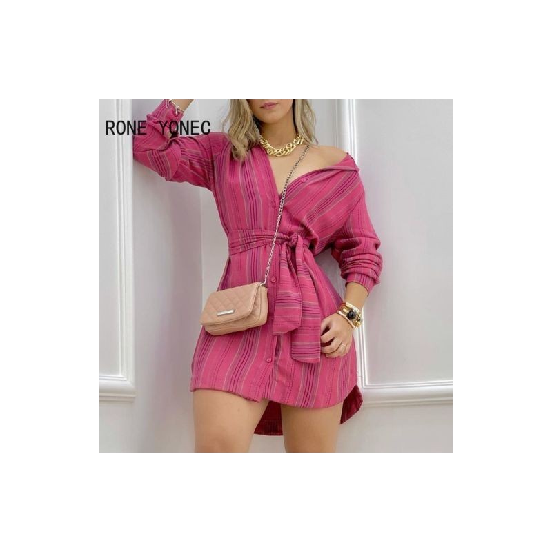 Women Casual Striped V neck Long Sleeves Sashes mini Sexy Sweat shirt Dresses