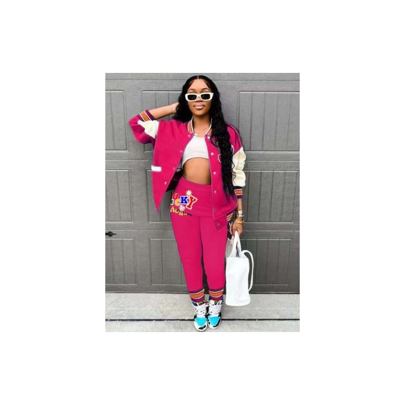 Casual Baseball Varsity Two Piece Jogger Sets College Style Long Sleeve Oversized Jackets and Workout Sporty Pant Matching Suits