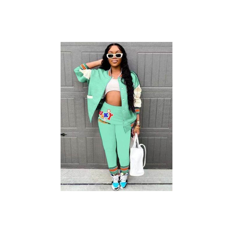 Alkalmi Baseball Varsity kétrészes kocogó szettek College stílusú, hosszú ujjú, túlméretezett dzsekik és edzéshez sportos nadrághoz illő öltönyök