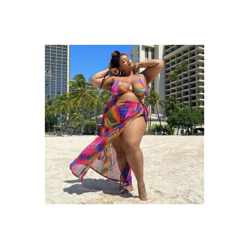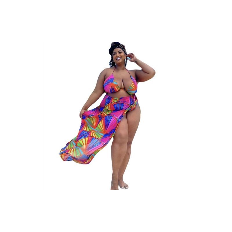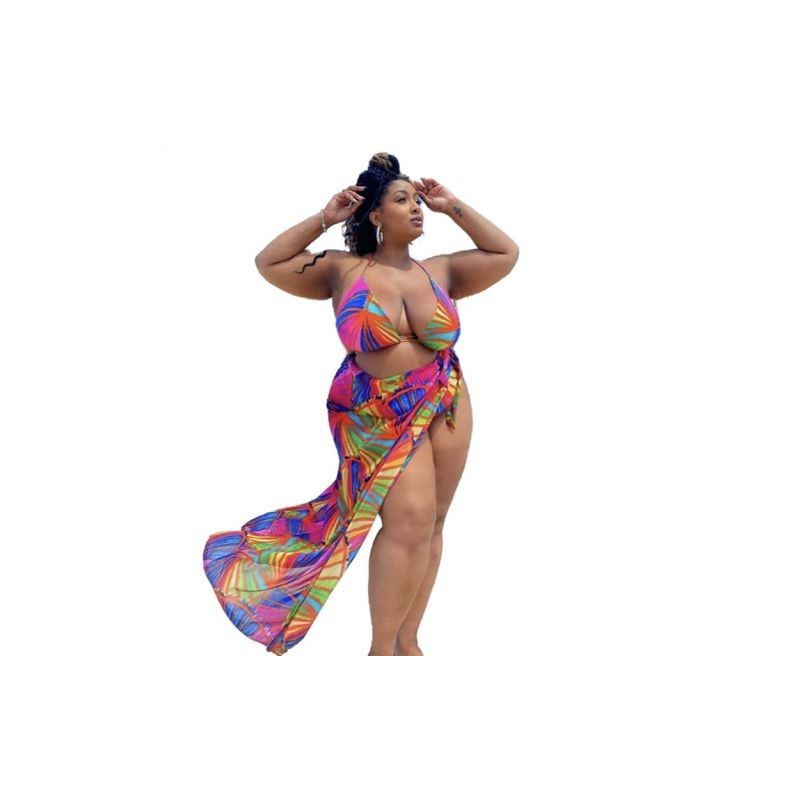 Plus Size Sets 3 Piece Bikini Set Women Print High Waist Bra Beach Cover Up Bathing Suits Summer Clothes