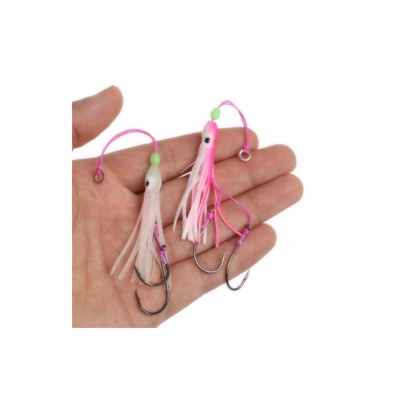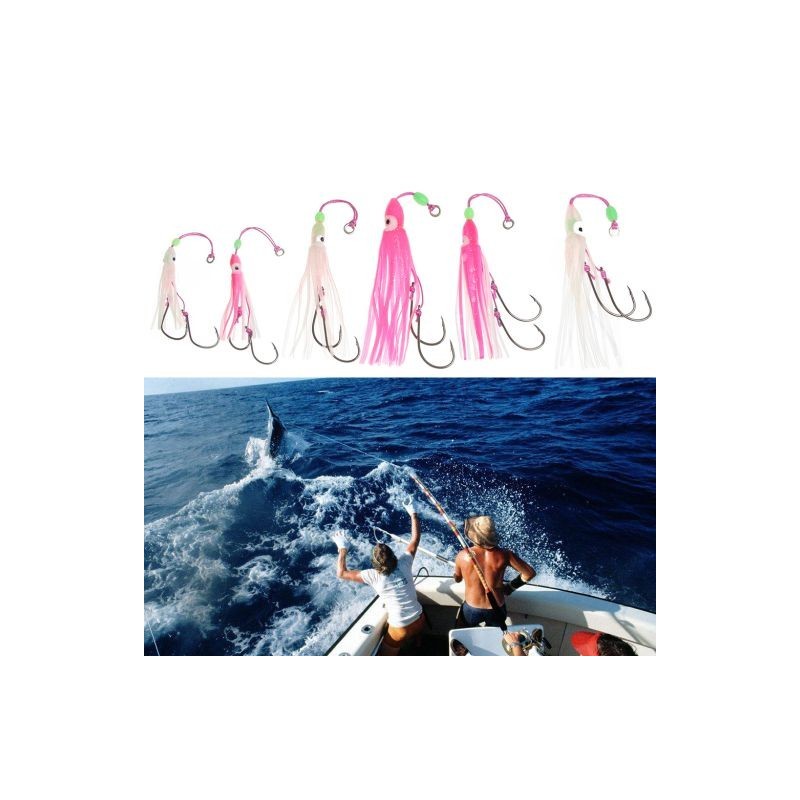 Material: Plastic Metal Color: Luminous / Pink(Optional) Size: 6cm / 2.3in,10cm / 3.9in, 12cm / 4.7in(Optional) Package Size: 14 * 10 * 1cm / 5.3 * 3.9 * 0.3in Package Weight: 8-15g / 0.2-0.5oz Features: Soft lures squid bait with realistic design, lifelike swimming actions. Made of premium plastic, soft and flexible. Come with luminous beads glow brightly in the dark to attract big fish. Double super piercing barbed hook, easy to catch the fish. Metal ring design, convenient to tie on the fishing line. Great fishing tackle for anglers. Package List: 2 * Fishing Lure