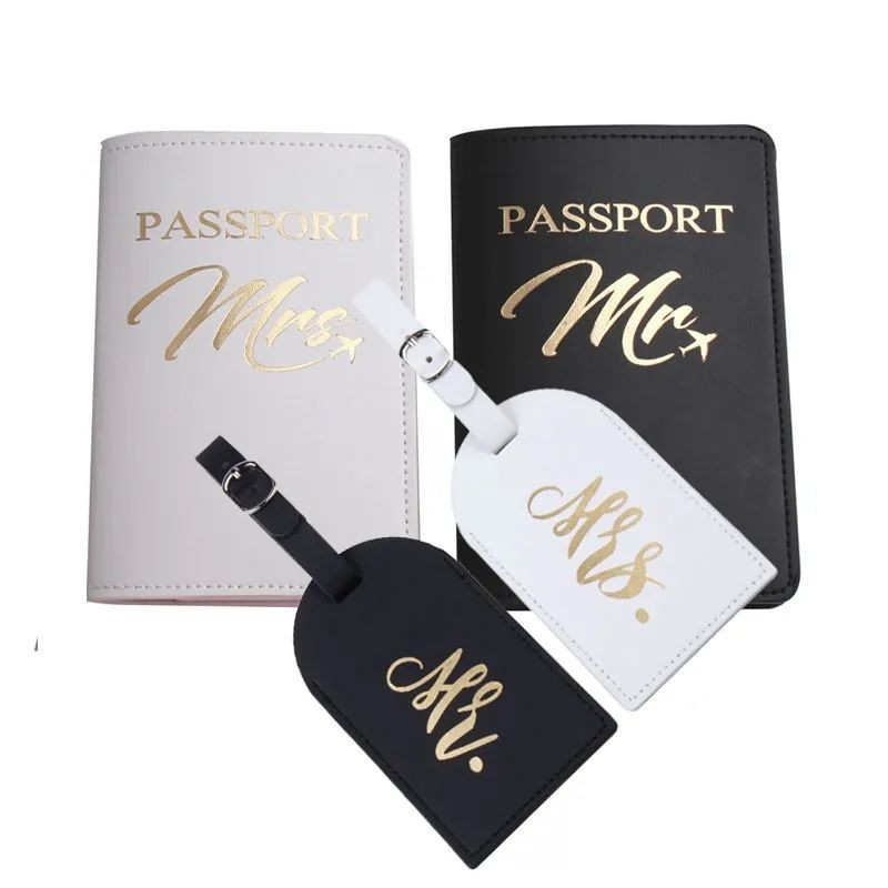 2PC/Set PU Leather Luggage Bag Tags Passport Cover Case Wallet for Couples Honeymoon Wedding Gift Travel Card Holder Organizer