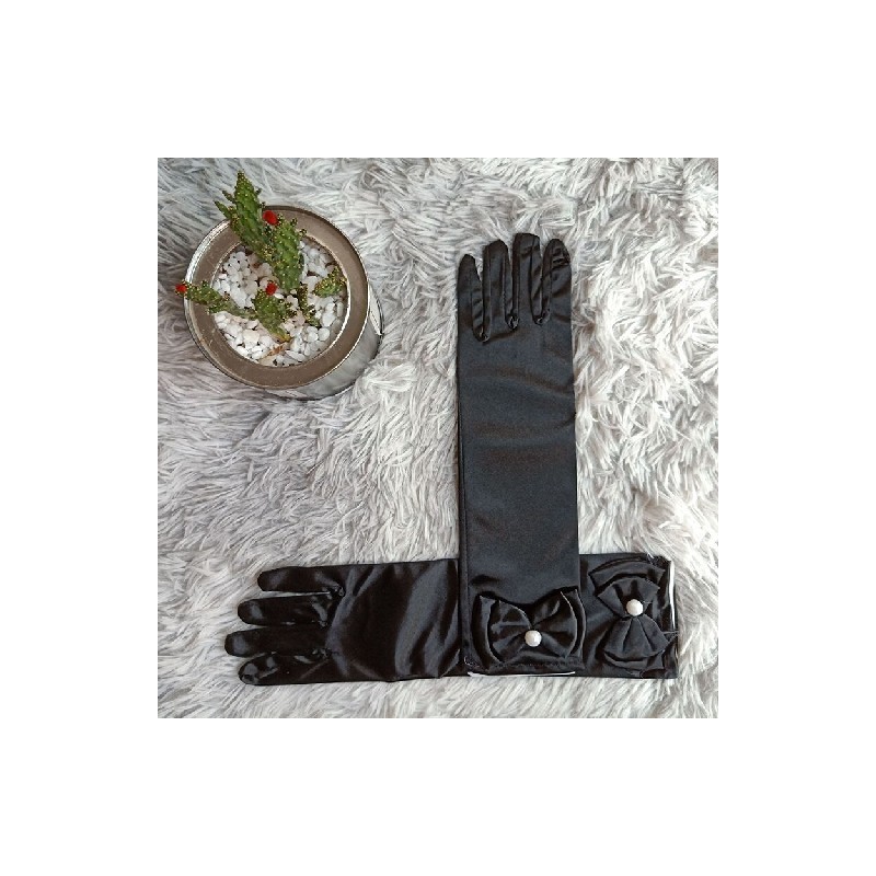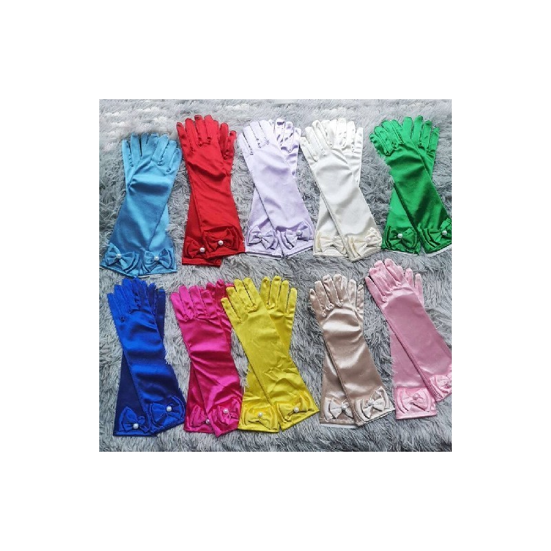 29 cm hosszú kesztyű szatén kétrétegű masni gyöngy teljes ujjú ujjatlan egyszínű Princess táncszínpad kesztyű esküvői ruha jelmez