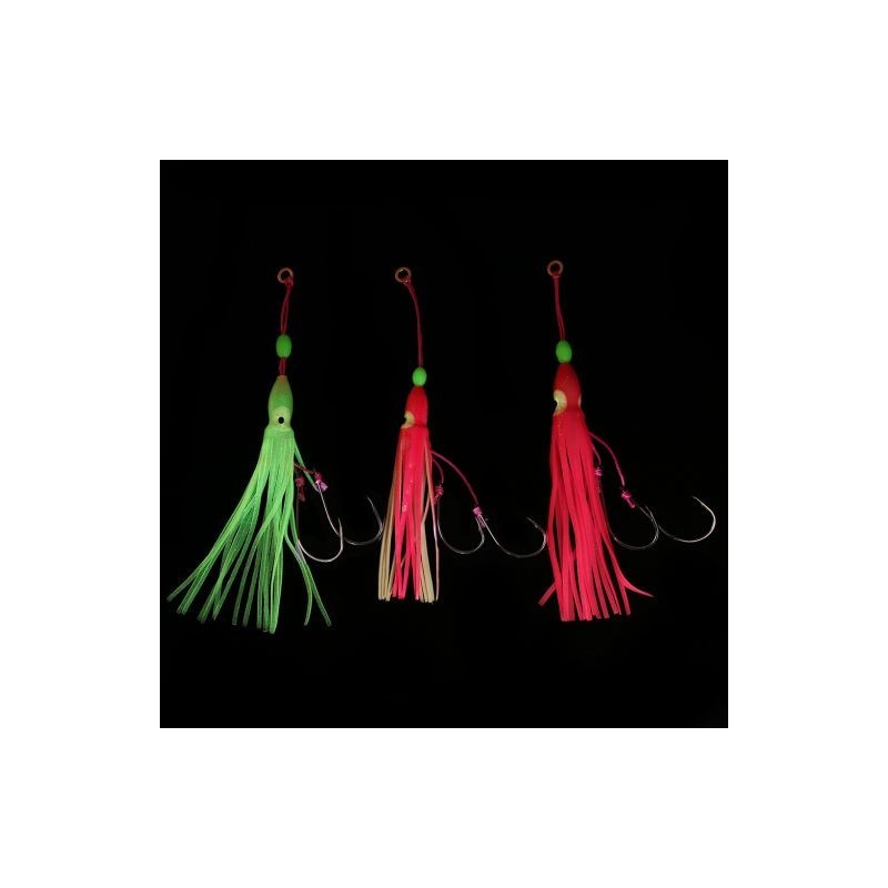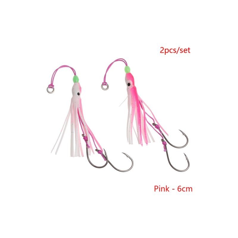 Material: Plastic Metal Color: Luminous / Pink(Optional) Size: 6cm / 2.3in,10cm / 3.9in, 12cm / 4.7in(Optional) Package Size: 14 * 10 * 1cm / 5.3 * 3.9 * 0.3in Package Weight: 8-15g / 0.2-0.5oz Features: Soft lures squid bait with realistic design, lifelike swimming actions. Made of premium plastic, soft and flexible. Come with luminous beads glow brightly in the dark to attract big fish. Double super piercing barbed hook, easy to catch the fish. Metal ring design, convenient to tie on the fishing line. Great fishing tackle for anglers. Package List: 2 * Fishing Lure