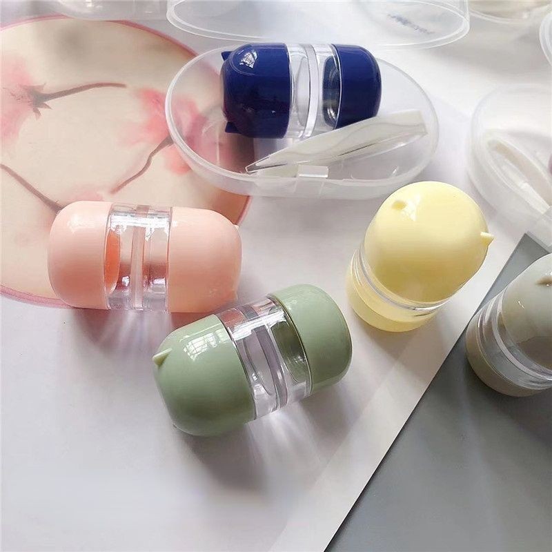 Portable Cute Mini Women Contact Lens Box Girl Simple Small One Vertical Double Head Contact Lenses Container Beauty Pupil Cases